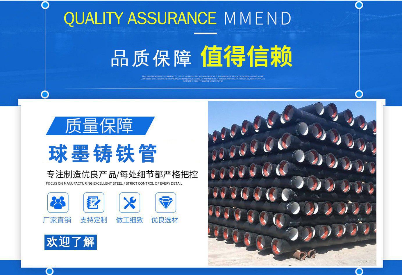 山西飛翔鑄業(yè)有限公司是一家以新興技術致力于研制開發(fā)、生產(chǎn)、銷售、施工安裝各種球墨管廠家,球墨鑄鐵管價格,國標球墨管,k9球墨鑄鐵管,國標球墨鑄鐵管,離心球墨鑄鐵管等系列鑄鐵產(chǎn)品。公司擁有完善的銷售、售后服務體系及一支由鑄造專家、工程師組成的精通產(chǎn)品設備和生產(chǎn)鑄造的技術力量隊伍。隨著企業(yè)的發(fā)展,我們積累了豐富的鑄造經(jīng)驗與科技水平。使得產(chǎn)品具有高強度、高韌性、耐腐蝕性強等性能。同時,我們獲得質(zhì)量管理體系認證、產(chǎn)品質(zhì)量認證、職業(yè)健康體系認證、環(huán)境管理體系認證。產(chǎn)品暢銷各地并打入韓國、新加坡等東南亞市場。 在未來的發(fā)展中,公司奉行誠信共雙贏,合作創(chuàng)盛世的企業(yè)理念。讓我們一起共創(chuàng)美好未來! 公司產(chǎn)品采用良好的工藝流程,以確保產(chǎn)品質(zhì)量的穩(wěn)定性:以良好的設備,確保質(zhì)量的可靠性。廣泛應用于國內(nèi)外城市的市政建設,通信,自來水,消防,園林,環(huán)保等行業(yè),產(chǎn)品大獲贊譽! 我們有多年的井蓋生產(chǎn)經(jīng)驗,多名老技術工人有將近二十年的生產(chǎn)經(jīng)驗,還聘請多名新技術研發(fā)人員,因為我們始終堅信質(zhì)量才是未來生存的根本,只有把質(zhì)量保證了,企業(yè)才會有更加美好的未來。公司堅持用心服務,誠信為本,與時俱進,科技為先的企業(yè)理念,堅持科技先導、竭誠為廣大用戶服務。歡迎各界朋友蒞臨我公司參觀,指導洽談業(yè)務,相信選擇我們就是選擇我們共贏的明天...